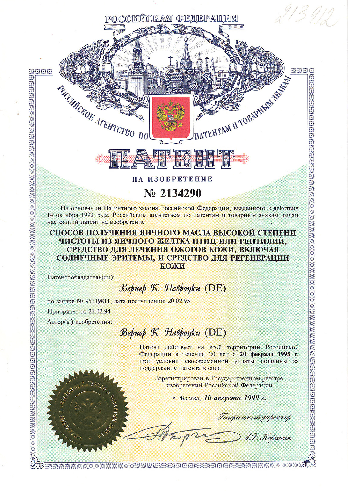 Russisches Patent für das Eioel